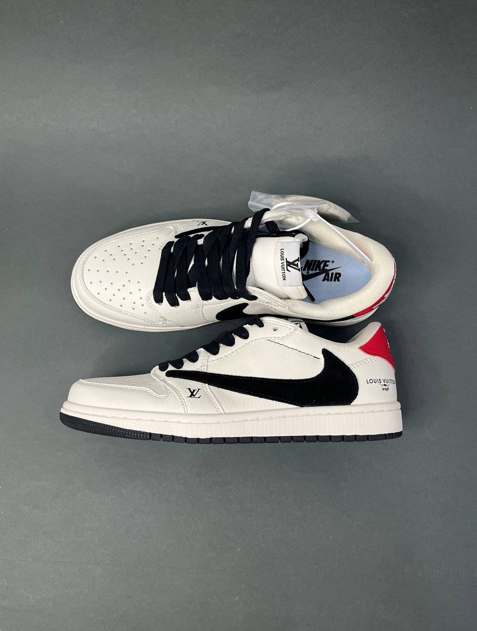 کفش نایک ایر جردن وان لو لویی ویتون سفید مشکی قرمز Nike Air Jordan 1 Low Louis Vuitton White Black Red