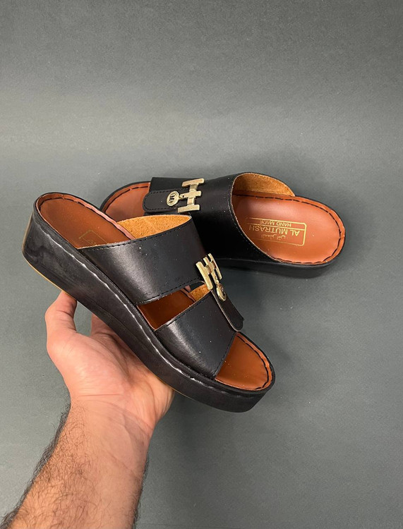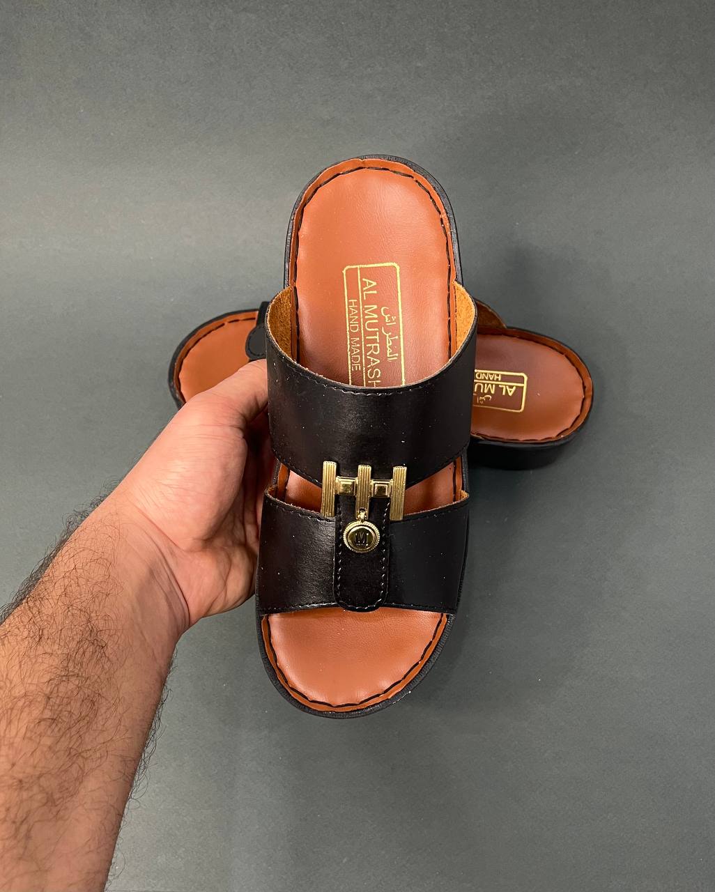 این صندل مردانه، تلفیقی بینظیر از استایل سنتی و جلوه امروزی است. با طراحی دو بند و سگک برجسته طلایی رنگ، برای مردانی که به دنبال کفشی راحت برای استفاده روزمره و مجالس نیمهرسمی هستند، انتخابی عالی محسوب میشود. رویه بافتدار مشکی مات، استحکام و زیبایی خاصی به این محصول بخشیده و کفی داخلی چرمی با رنگ گرم، راحتی فوقالعادهای را در ساعات طولانی استفاده تضمین میکند. سگک تزئینی طلایی، نقطه کانونی طراحی این صندل شیک است.