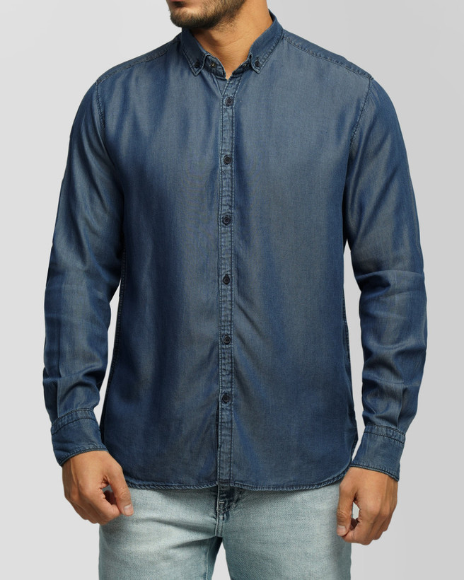 پیراهن طرح جین آستین بلند مردانه، با برش معمولی، شیک و اسپرت