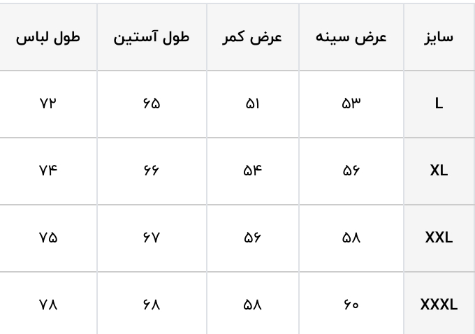 با توجه به تفاوت نمایش رنگها در صفحه نمایش دستگاههای مختلف، رنگ محصولات در تصویر تا 20% با واقعیت متفاوت خواهد بود و راهنمای سایز عکس اخر
